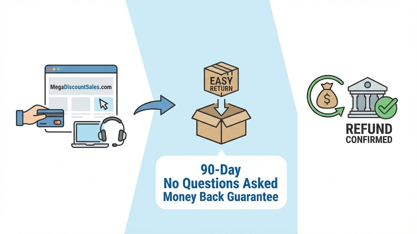 We are committed to your complete satisfaction. If you are not 100% happy with your electronics purchase from MegaDiscountSales.com, you can return it within 90 calendar days of receiving your order for a full refund. We won't ask why—simply return the item in its original condition.