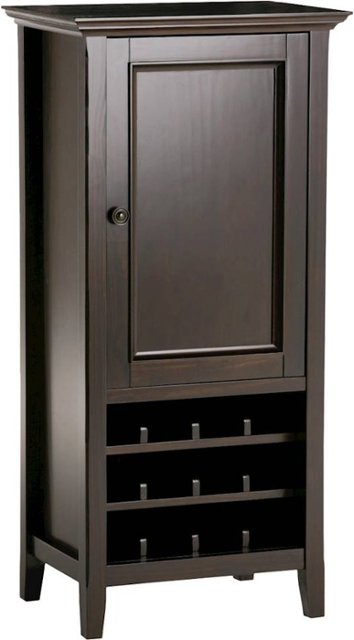 Loading... Please wait...Serve up a mean cocktail with this Simpli Home Amherst wine rack. The integrated wine storage rack accommodates up to 12 bottles of your favorite vintages, while a storage compartment with two adjustable shelves provides room for mixers and spirits. This Simpli Home Amherst wine rack boasts solid wood construction and tapered legs for durability and stability.